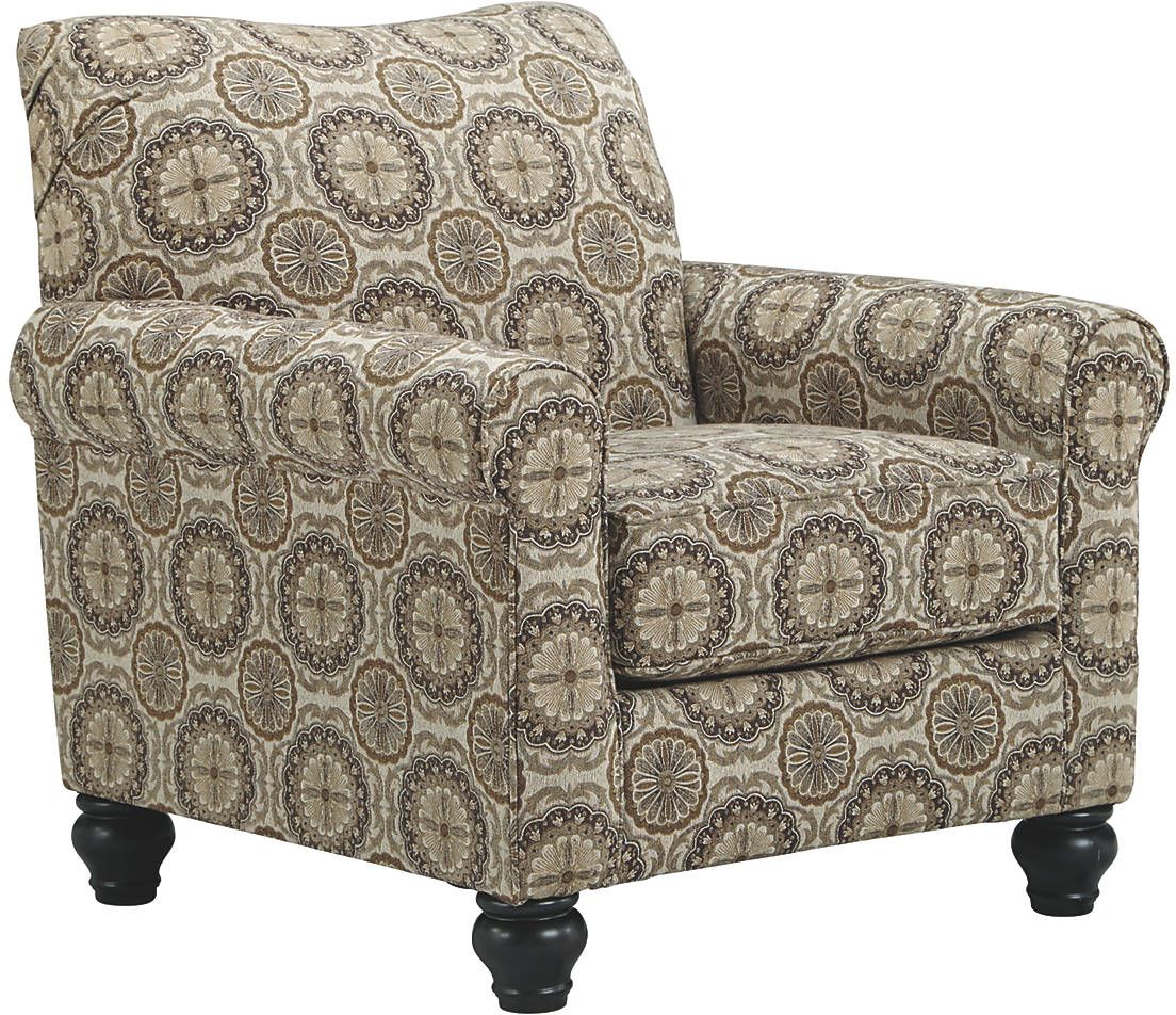 Graceful and proud, the pattern and design of this Breville accent chair exudes sophistication into your space. Saturate your home with cool style, from the soothing neutral tones to the eloquently rolled arms and charming dark wood feet. You get more than just beauty from the plush cushioning on a neatly tailored silhouette; the Breville accent chair is luxury you want to sit on, and with Benchcraft® comfort and construction, you’ll do so for years to come.