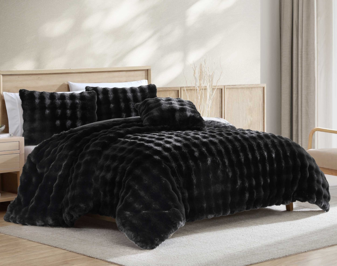 Bubble Black 4-Piece Super Soft Faux Fur Queen Comforter SetRead More