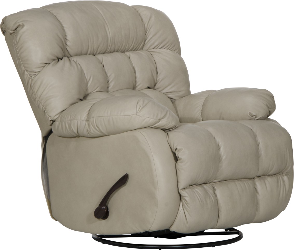 The Pendleton Alabaster Chaise Swivel Glider Recliner features a contemporary biscuit back design and swivel glider comfort. The top grain Italian leather/match paired with the Comfort Coil Seating featuring Comfor-Gel create an extremely comfortable seat.Read More