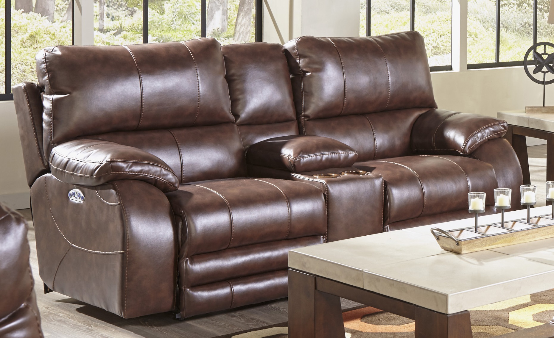 With a powered headrest and powered lay flat reclining console loveseat by Catnapper®, comfort, convenience, and style. The Sheridan reclining loveseat is made for game days and movie marathons. Featuring Comfort coil cushions with Comfor-Gel provides ample, cool airflow and body-hugging support. Phone running low but you don’t want to miss a bit of the action? The built-in USB ports have got your back. So relax, lay flat and escape into the realm of bliss within your home.