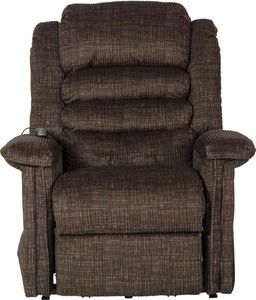 The Soother Chocolate Power Lift Full Lay-Out Chaise Recliner with Heat & Massage features heat and massage, as well as, panel arms. The multi-color polyester fabric over the steel seat box creates an extremely comfortable seat.