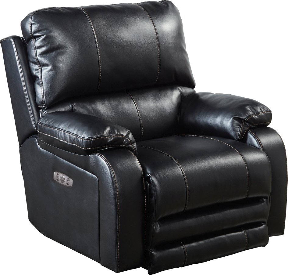 The Thornton Black Power Headrest with Lumbar Power Lay Flat Recliner features a powered headrest and lay flat reclining. The padded polyurethane faux leather fabric paired with the comfort coil seating featuring Comfor-Gel create an extremely comfortable seat.