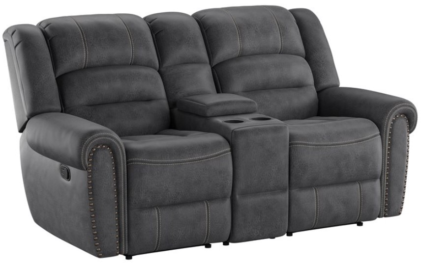 The Baldwin motion collection disproves the idea that good looks must be sacrificed for comfort. Rolled arms, nailhead trim, and contrast baseball stitching establish the traditional form. The weathered texture of faux leather is further enhanced by a distinguished slate gray color with blue undertones. Get a classic, traditional look with the Baldwin collection.Read More