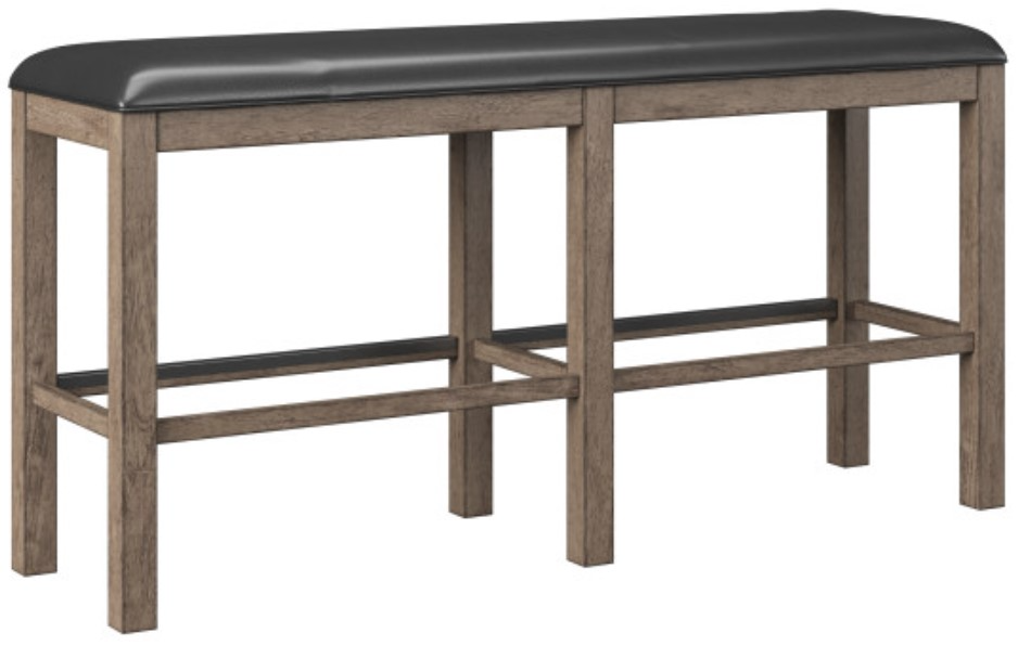 Belly up to the bar of your choice with the Benton. Options abound for the perfect spot to gather with friends and family with this casual, bar height dining collection. Randomly matched oak veneers finished in a warm, pecan brown create a laid-back appeal while hardwood solids, easy-to-maintain Polyurethane faux leather upholstery, and metal foot rails and kick plates assure the Benton collection will stand up to the rigors of everyday use.