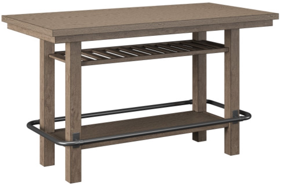 Belly up to the bar of your choice with the Benton. Options abound for the perfect spot to gather with friends and family with this casual, bar height dining collection. Randomly matched oak veneers finished in a warm, pecan brown create a laid-back appeal while hardwood solids, easy-to-maintain Polyurethane faux leather upholstery, and metal foot rails and kick plates assure the Benton collection will stand up to the rigors of everyday use.