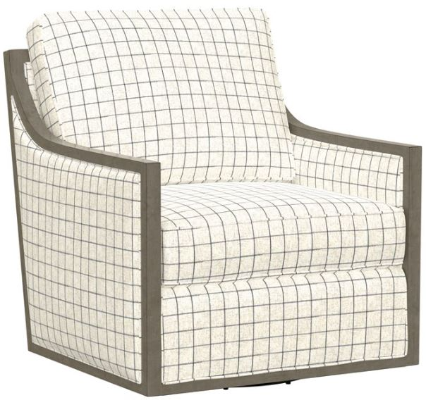 Cecily draws quiet attention with its balanced blend of structural and tailored shapes. Starting with a solid wood floating base, soft, cream-colored fabric covers the uncluttered lines and clean silhouette of the sofa, loveseat, and chair. Swivel chairs in floral and windowpane patterns are trimmed on all edges with shapely wood for stylish accessories. Completing the ensemble is a coordinating ottoman with hidden storage and castors to glide with ease. The Cecily collection will be the belle of your room with its transitional appeal.