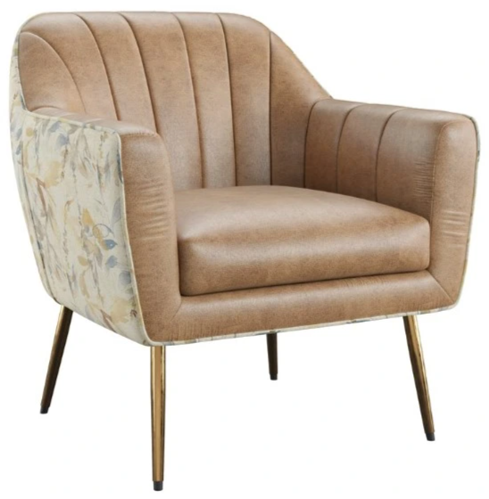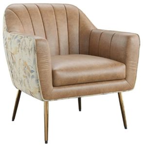 Vintage flair and an eye-catching combination of solid and print fabrics are the calling card of the Ophelia accent chair. A silhouette reminiscent of mid-century modern design with a lower back and upholstered arms perch atop slender gold-toned metal legs.Read More