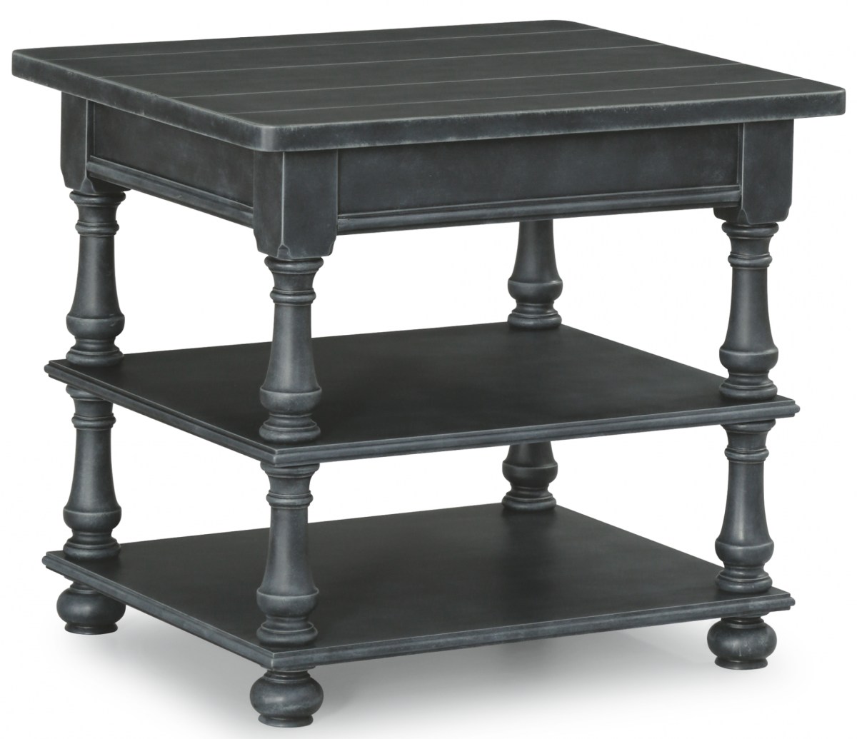 Inspired by Neo-Classical architecture and furnishings, the Charleston end table reflects this classic style through candlestick round turned legs and the exaggerated dentil moldings. Meticulously applied coatings replicate refinished and time-worn pieces, which adds warmth and softness.