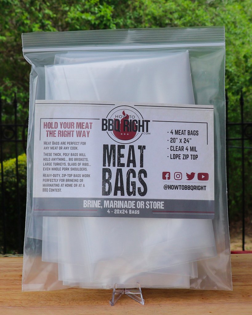 The perfect zip top bag for marinating, brining, and injecting-without the mess! Our HowToBBQRight Meat Bag makes getting the flavor you want easy and mess free! These thick, poly bags will hold anything- big briskets, large turkeys, slabs of ribs, even whole pork shoulders.