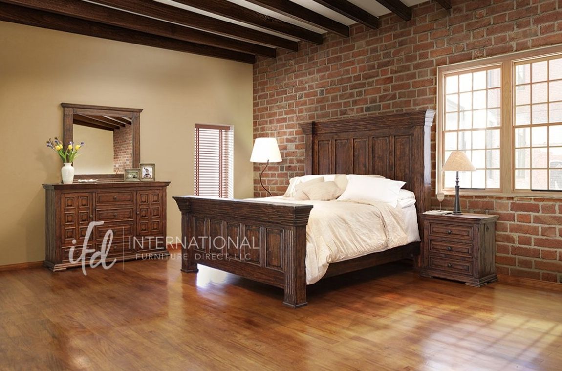 This oversized bedroom will surely make a statement in any home. Featuring custom cast pulls microfiber lined drawers top drawer on dresser ball bearing glides and English dovetailing on drawer fronts. This bedroom provides a true Old World look.