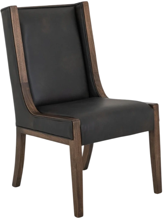 Elevate your dining space with the chair from the Walnut collection. This chair combines durability with elegant design. Its tone enhances the wood's natural beauty and grain. Features a padded seat upholstered in high-quality faux leather, providing both comfort and style.Read More