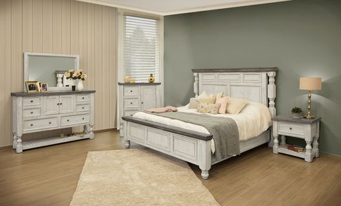 The Stone Bedroom Collection features 100% solid Pine wood construction, and a multi-step lacquer finish.