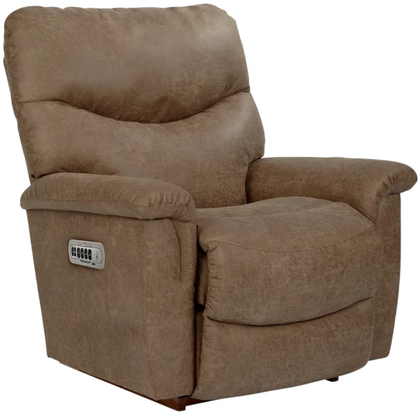 The James Power Rocking Recliner with Headrest and Lumbar has a sculpted-bucket chaise seat and legrest create a continuous zone of comfort in the reclining position. This updated model features a side-mounted control panel that allows you to adjust the back, legrest, headrest and lumbar for an unlimited number of relaxing positions. Plus, a USB charging port and two memory settings that save your favorite reclining positions. When you’re not reclining, it’s a relaxing rocker with a smooth, graceful motion.