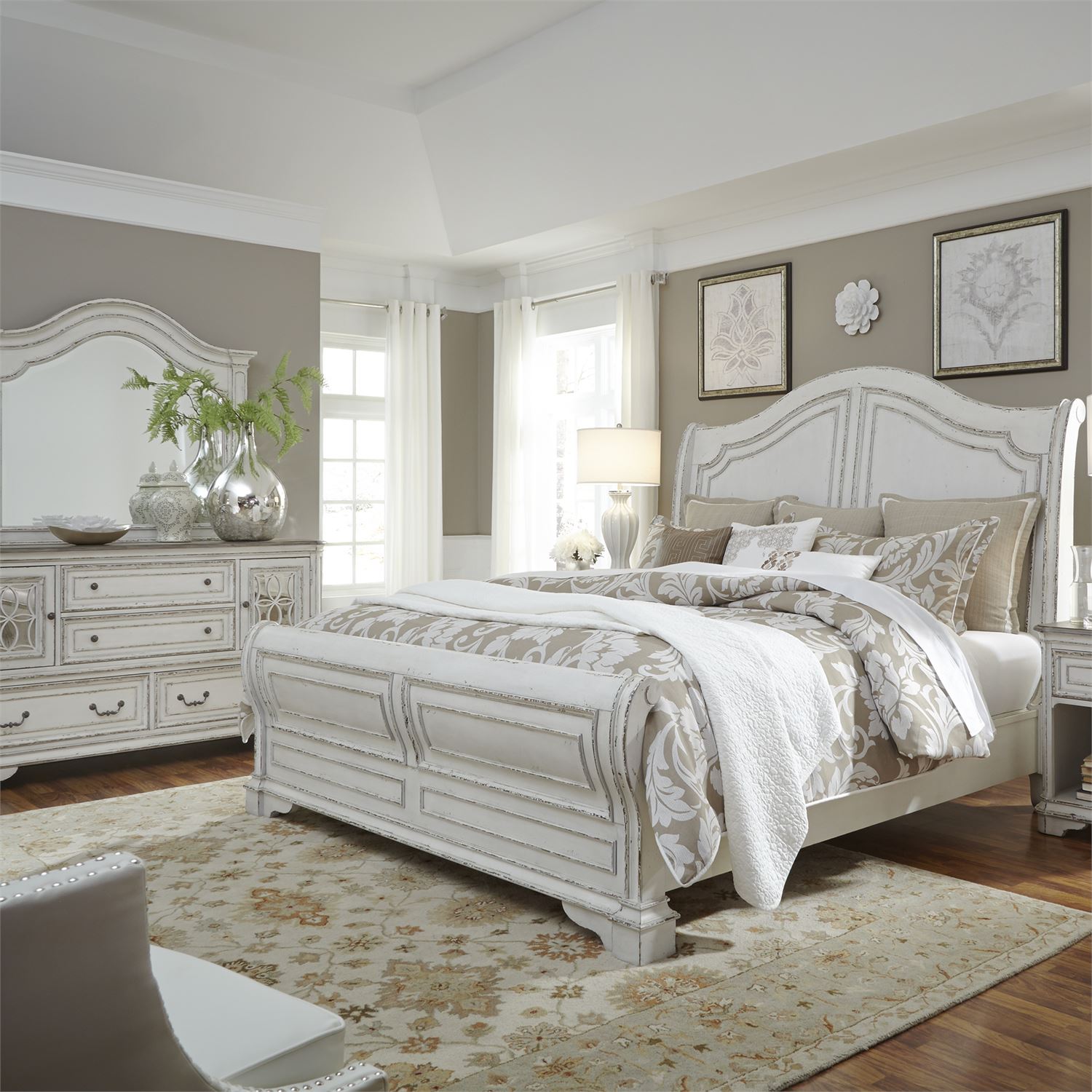 Allow yourself to be captivated by the Magnolia Manor collection and its sweeping design that’ll have you believing dreams do come true. Crafted in antique white with wood accents and charming aged detail, this collection is a sophisticated balance of vintage character with up-to-date style that makes sleeping even more enchanting.