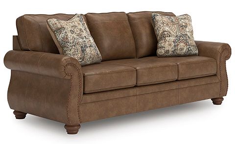 Everyone can have the best rest in the house with this queen sofa sleeper. Its nailhead trim puts the finishing touches on the traditional roll arms you love. The sofa's comfy, durable cushions—wrapped in a rustic yet sophisticated faux leather—keep you feeling relaxed.Read More
