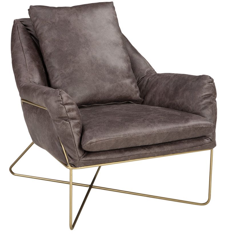 Sit back against the high-resiliency loose back foam cushioning of the Crosshaven accent chair. The gold-tone metal frame contrasts beautifully with the dark, faux-leather upholstery, giving your home a splash of contemporary flair.