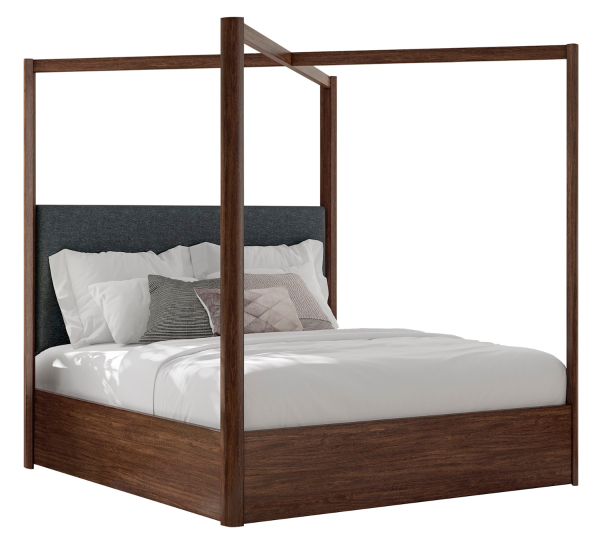 Casual contemporary styling with a decidedly modern vibe. Bathed in a rich dark brown finish, this California king canopy bed is warm and inviting. Its integrated “X” canopy and full wrap-around rails set to the floor adorn your restful retreat with on-trend elegance.Read More