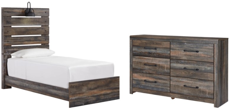 Includes twin panel bed (headboard, footboard and rails) and 6-drawer dresser