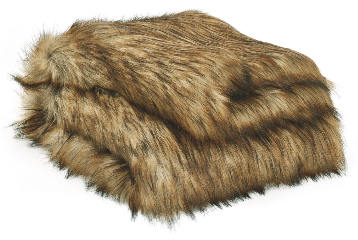 Throw. Machine Woven Faux Fur in Brown, Black, Caramel. Acrylic Blend. Dry Clean Only.