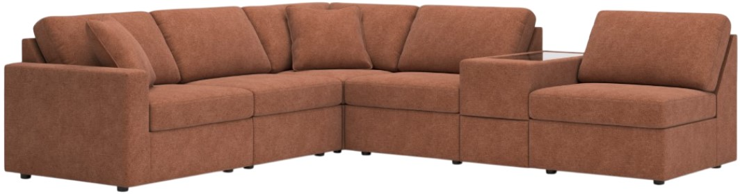 Looking cool and contemporary is great. But when it comes down to it, you’re all about low-maintenance lounging. With the performance fabric on this sectional with console, cleaning spills is a breeze. Its customizable modular design caters to your ever-changing needs.Read More
