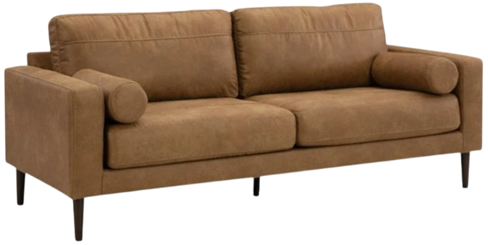 Small-scale style, tailored to perfection. This sofa echoes retro aesthetics with warm caramel faux leather, while its ultra-linear silhouette incorporates a contemporary edge. Versatile in form and function, the seat suits styles from modern boho to transitional.Read More