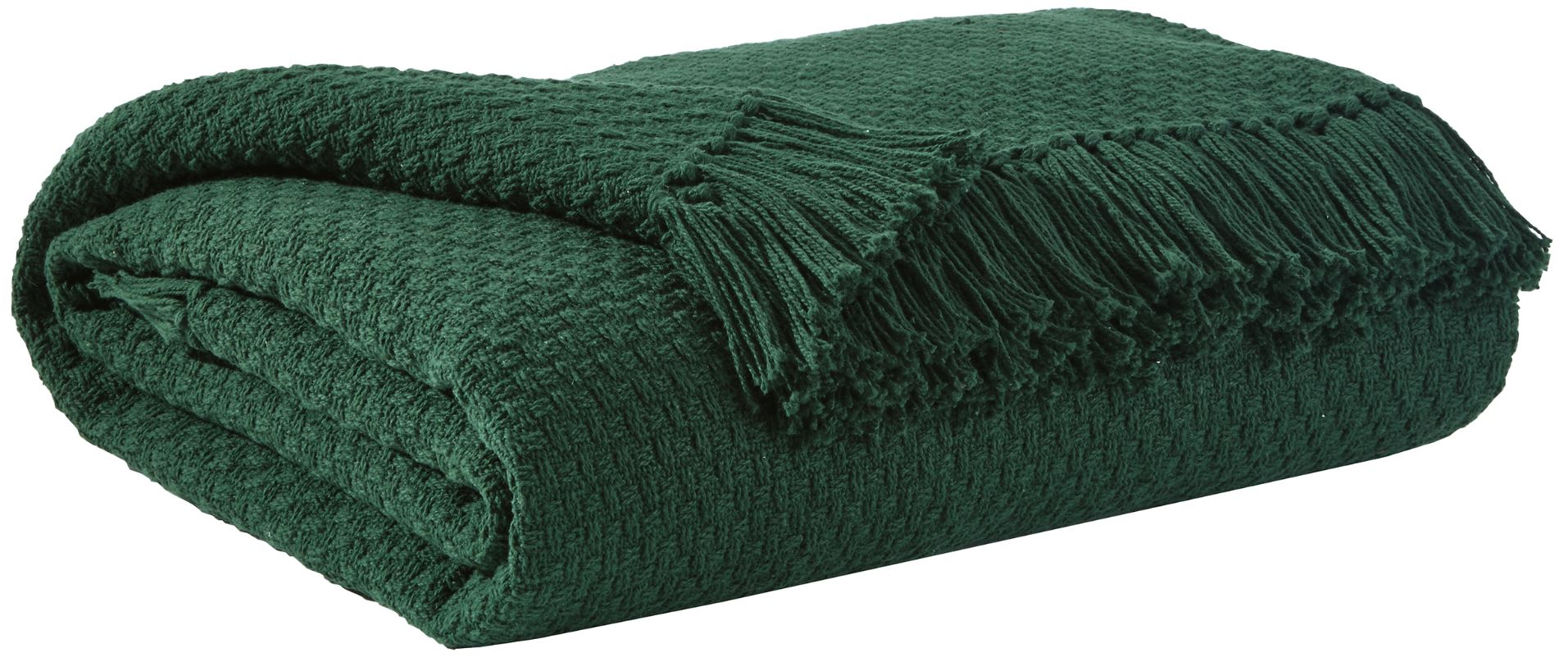 Wrap yourself in color, comfort, and cozy texture with this sumptuous throw in deep green. A treat for the senses, this cotton throw is beautified with a waffle weave design and fringe details for a flirty touch.