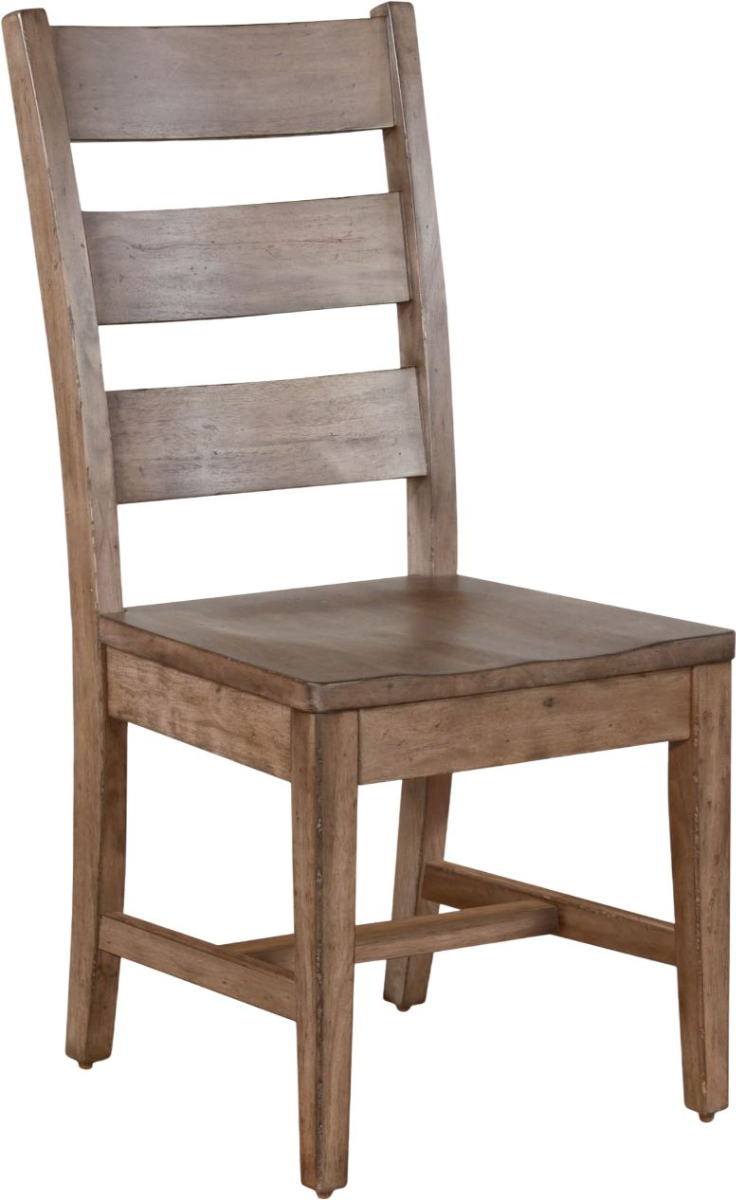 This Doe Valley ladder-back chair with stretchers and wood seat has a beautiful Buckskin finish that goes with almost any décor, and was built with mahogany solids and veneers. This chair will definitely complete your dining room design.Read More