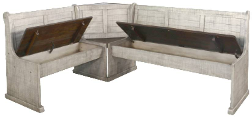 The Homestead Hills breakfast nook is beautifully crafted with mahogany solids and veneers and finished in a two-tone Tobacco Leaf and Alpine Grey finish that accentuates its beauty. The versatile storage benches are reversible and functional. The ability to reverse its orientation makes it adaptable to any space layout.Read More